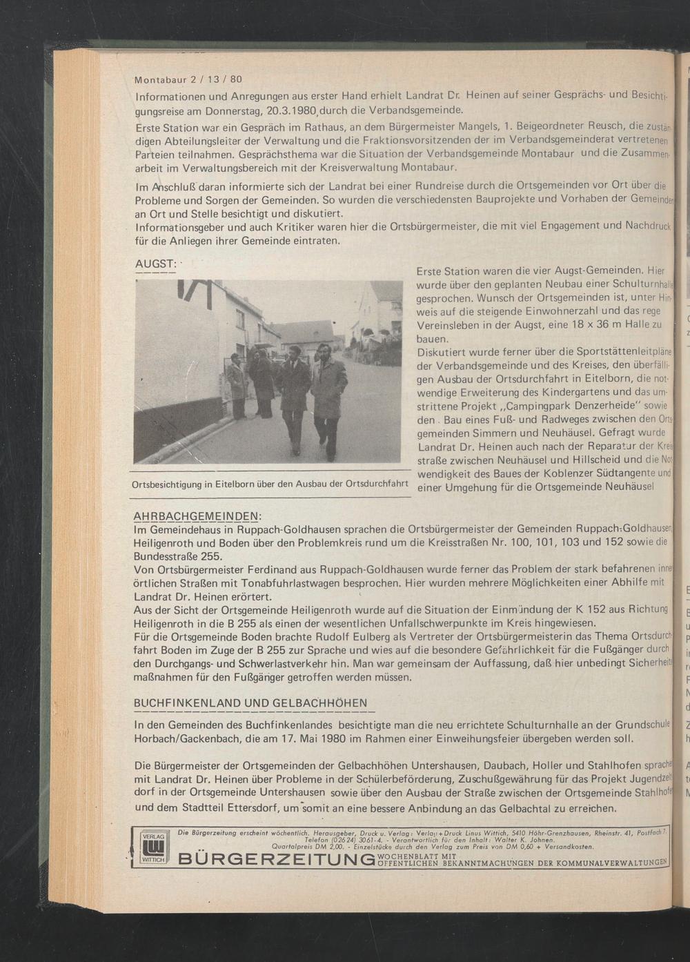 Informationen und Anregungen aus erster Hand erhielt Landrat Dr. Heinen auf seiner Gesprächs- und Besichtigungsreise am Donnerstag, 20.3.1980,durch die Verbandsgemeinde.