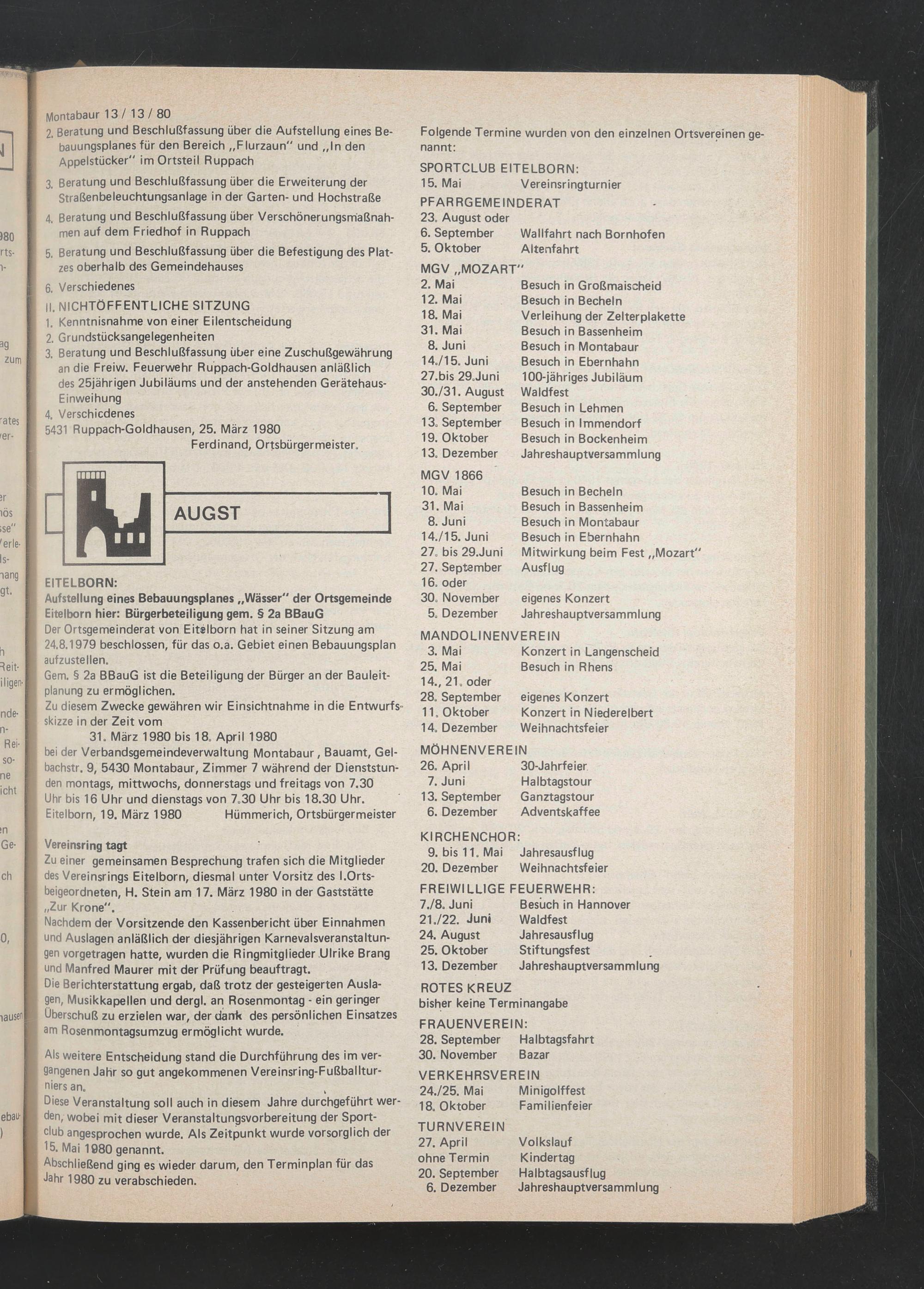 Abschließend ging es wieder darum, den Terminplan für das Jahr 1980 zu verabschieden.