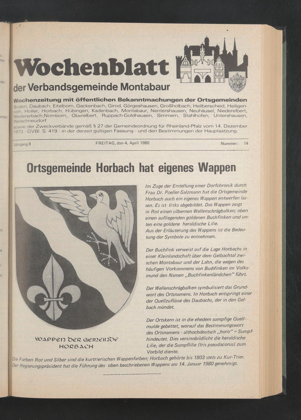 Jahrgang 8 FREITAG, den 4. ApriM980 Nummer: 14