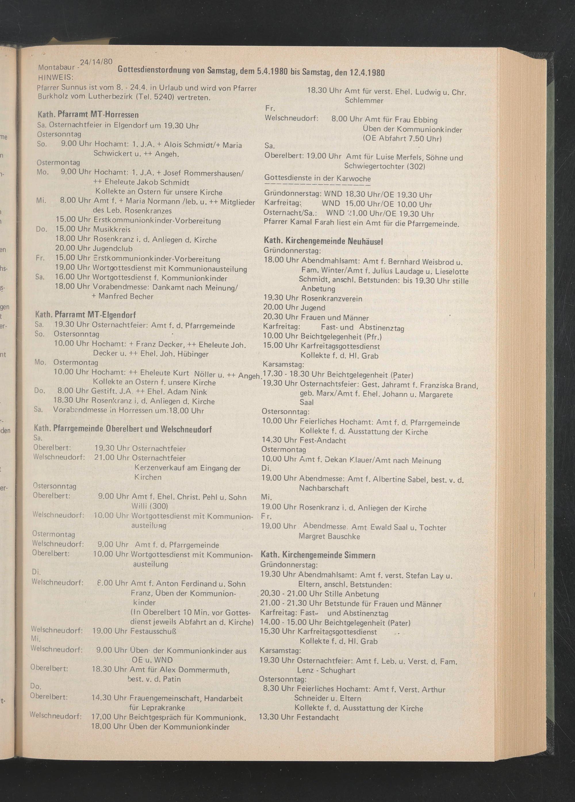 Montabaur - Gottesdienstordnung von Samstag, dem 5.4.1980 bis Samstag, den 12.4.1980