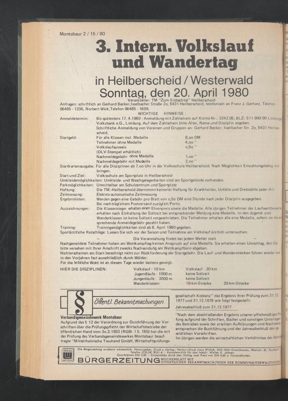 Anmeldetermin: Bis spätestens 17. 4.1980 - Anmeldung mit Zahlschein auf Konto-Nr.: 3242.05, BLZ: 511 900 00 Limburger