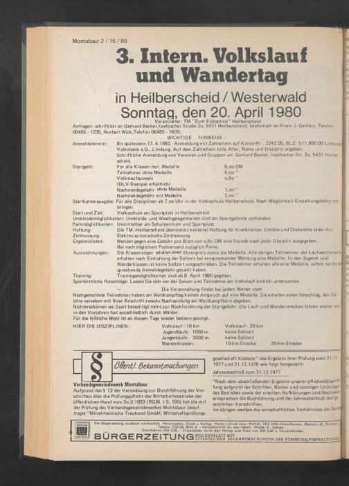 Anfragen: schriftlich an Gerhard Becker.lsselbacher Straße 2o, 5431 Heilberscheid, telefonisch an Franz J. Gerharz, Telefon 06485 - 1238, Norbert Wick,Telefon 06485 - 1609.
