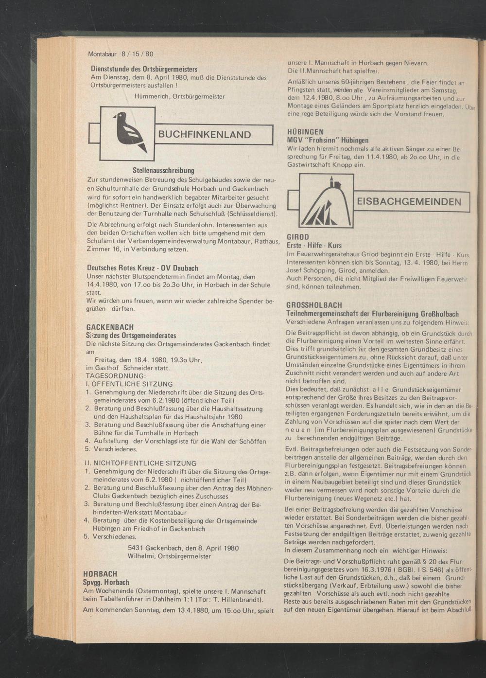 5431 Gackenbach, den 8. April 1980 Wilhelmi, Ortsbürgermeister