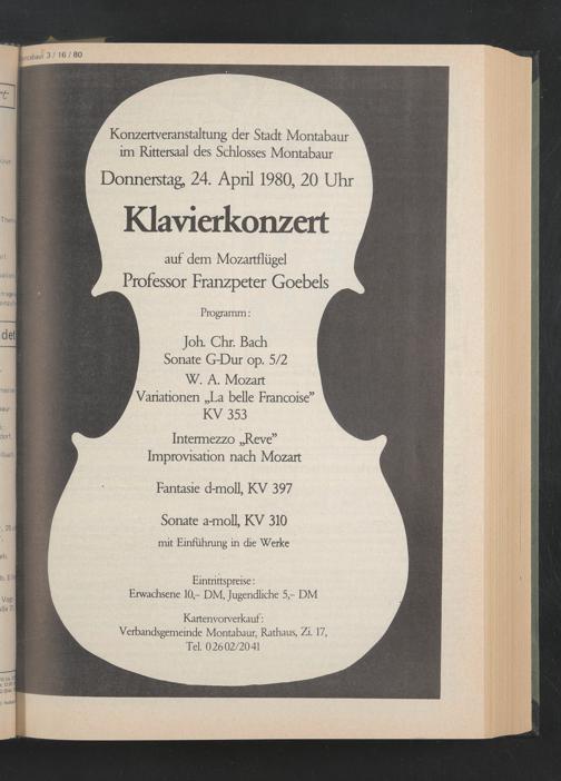 Konzertveranstaltung der Stadt Montabaur im Rittersaal des Schlosses Montabaur