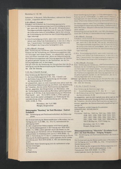 Montabaur, den 1 o.4.1980 Mangels, Bürgermeister