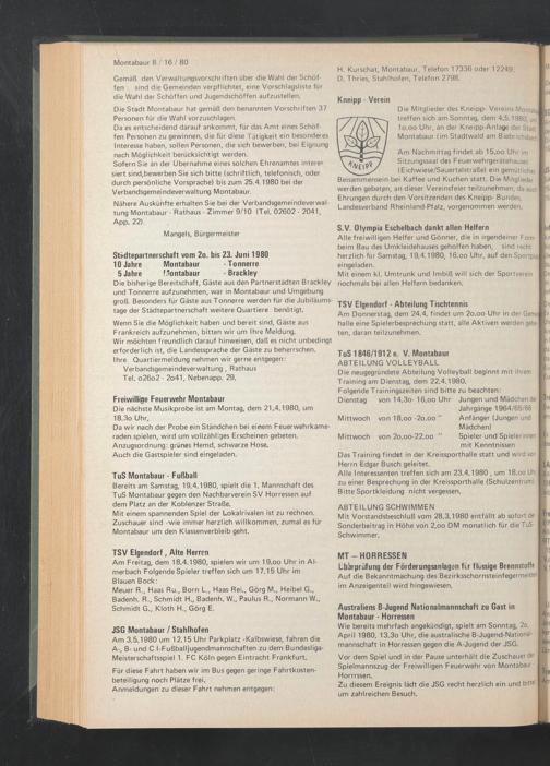 Sofern Sie an der Übernahme eines solchen Ehrenamtes interes siert sind,bewerben Sie sich bitte (schriftlich, telefonisch, oder durch persönliche Vorsprache) bis zum 25,4.1980 bei der Verbandsgemeindeverwaltung Montabaur,