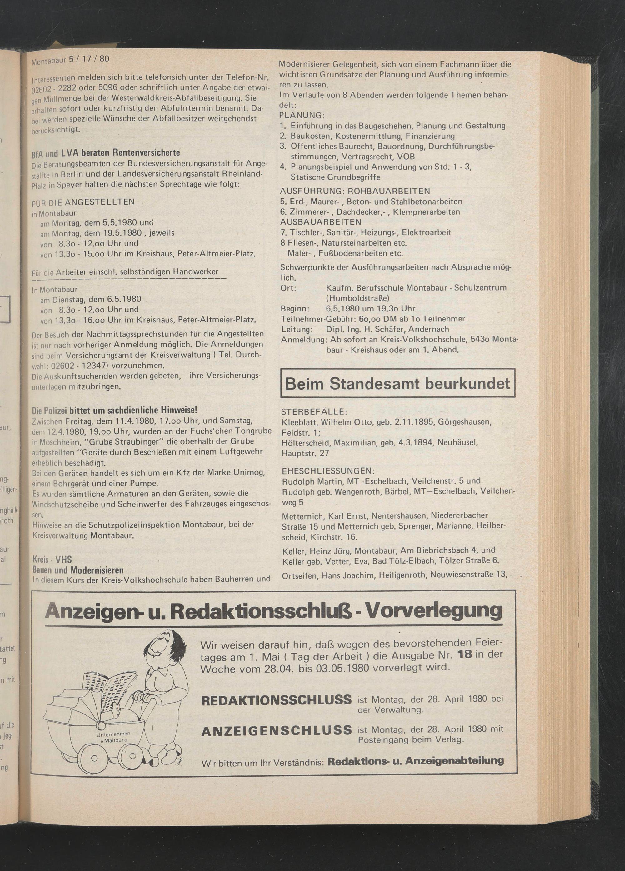 ANZEIGENSCHLUSS ist Montag, der 28. April 1980 mit