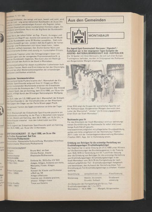 Überraschend beide Punkte brachte die I. Mannschaft der Eisbachtaler Sportfreunde aufgrund ihres 3:1 Sieges aus Mainz nit.Am kommenden Wochenende erwarten die Eisbachtaler Sportfreunde die Amateure des 1. FC Kaiserslautern. Der Anstoß ku diesem Spiel, das am Sonntag, dem 27.4.1980, um 15.oo Uhr beginnt, erfolgt durch den 81 maligen Nationalspieler Wolfgang Dverath.