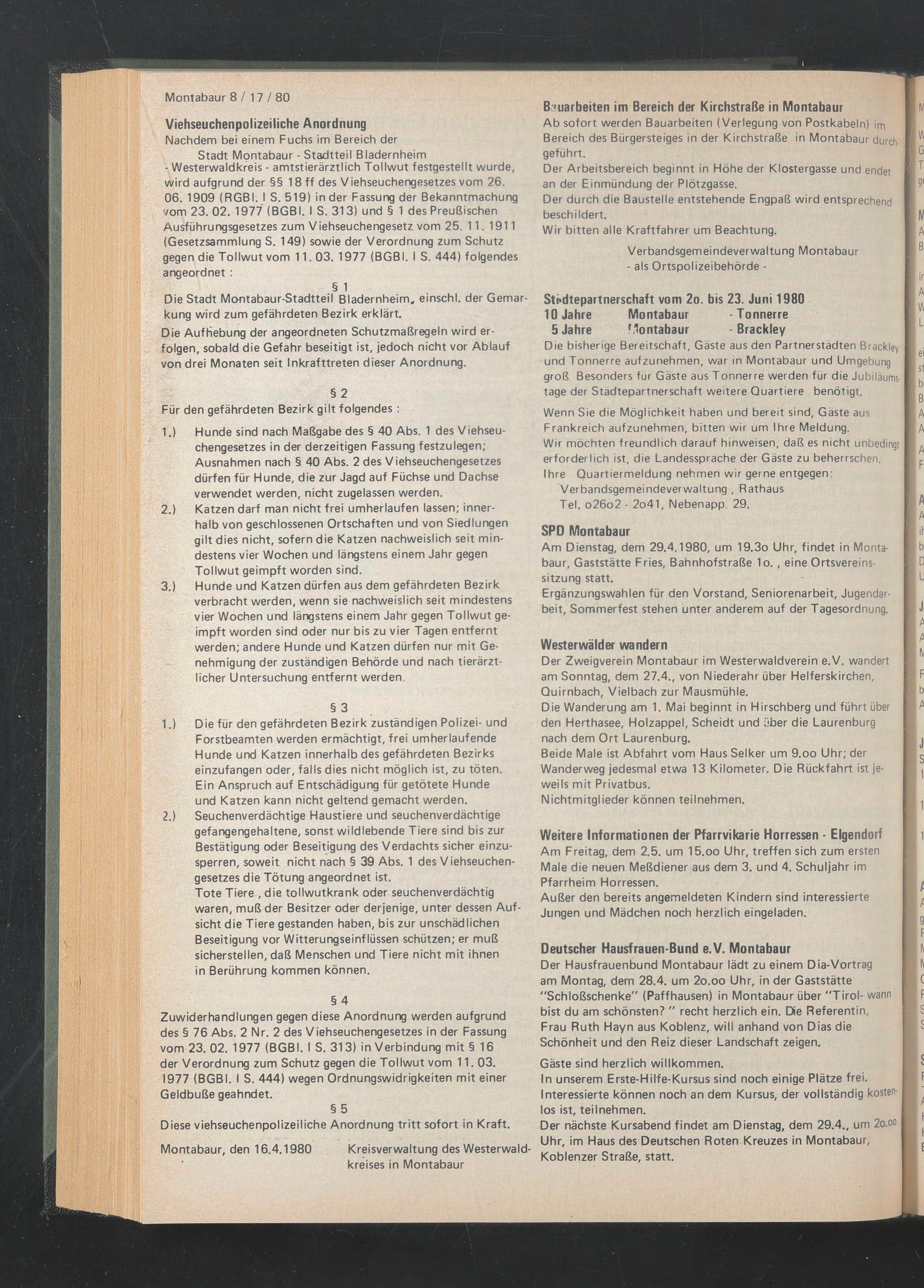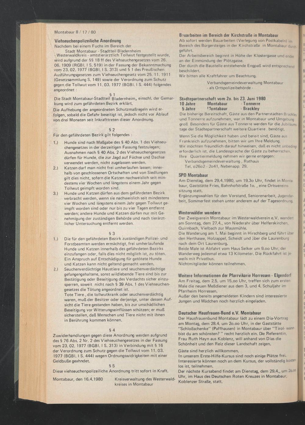 Montabaur, den 16.4.1980 Kreisverwaltung des Westerwaldkreises in Montabaur