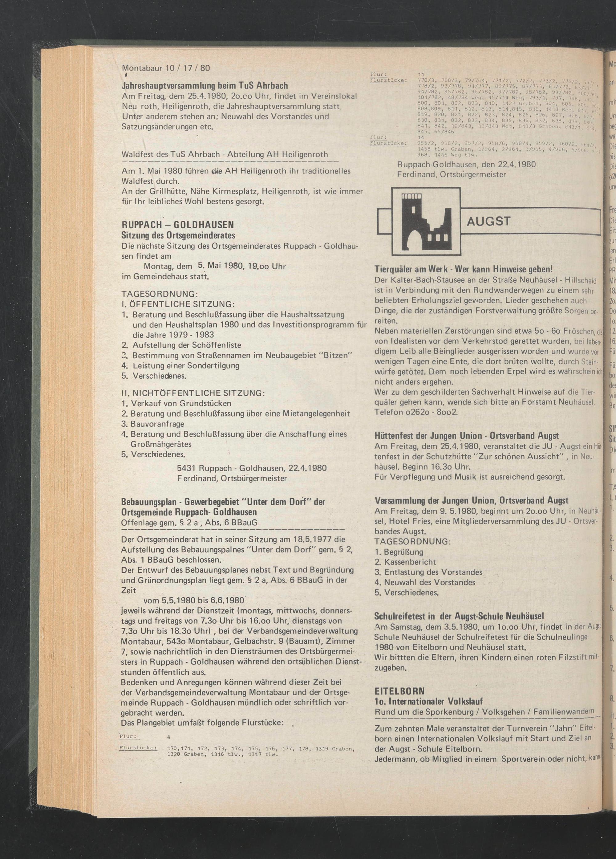 Ruppach-Goldhausen, den 22.4.1980 Ferdinand, Ortsbürgermeister