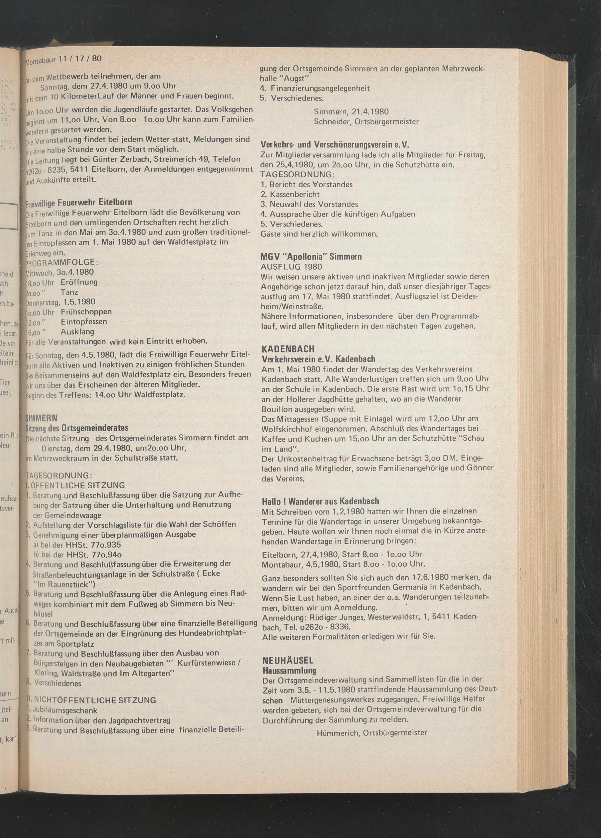 Simmern, 21.4.1980 Schneider, Ortsbürgermeister