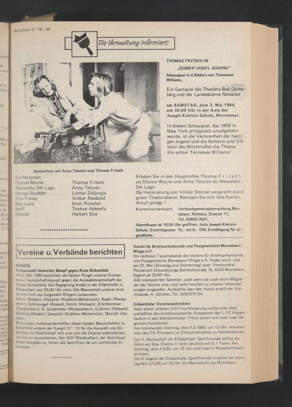 am SAMSTAG, dem 3. Mai 1980, um 20.00 Uhr in der Aula der Joseph-Kehrein-Schule, Montabaur.