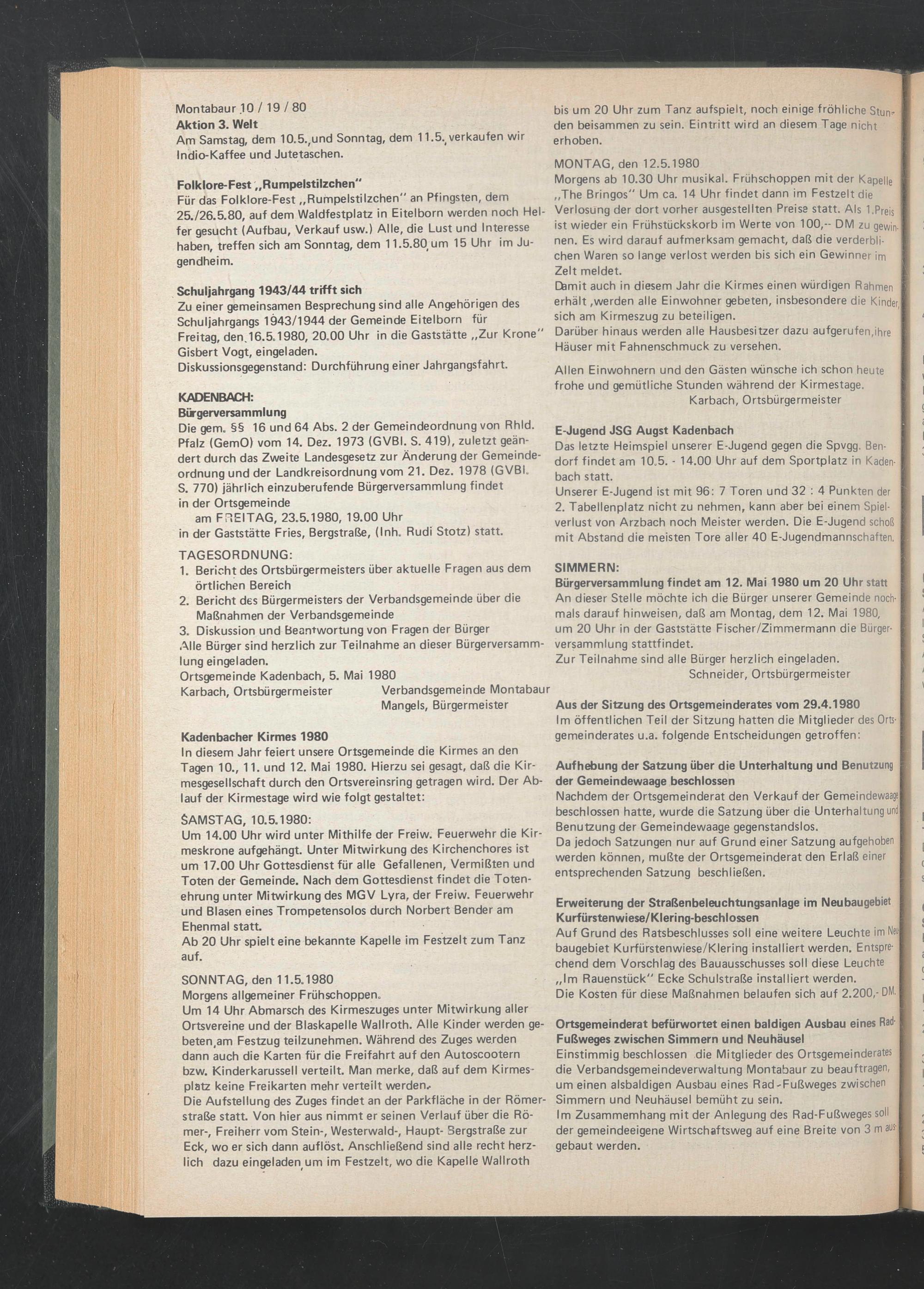 Ortsgemeinde Kadenbach, 5. Mai 1980