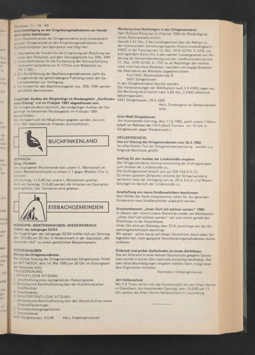 Aus dar Sitzung des Ortsgemeinderates vom 28.4.1980