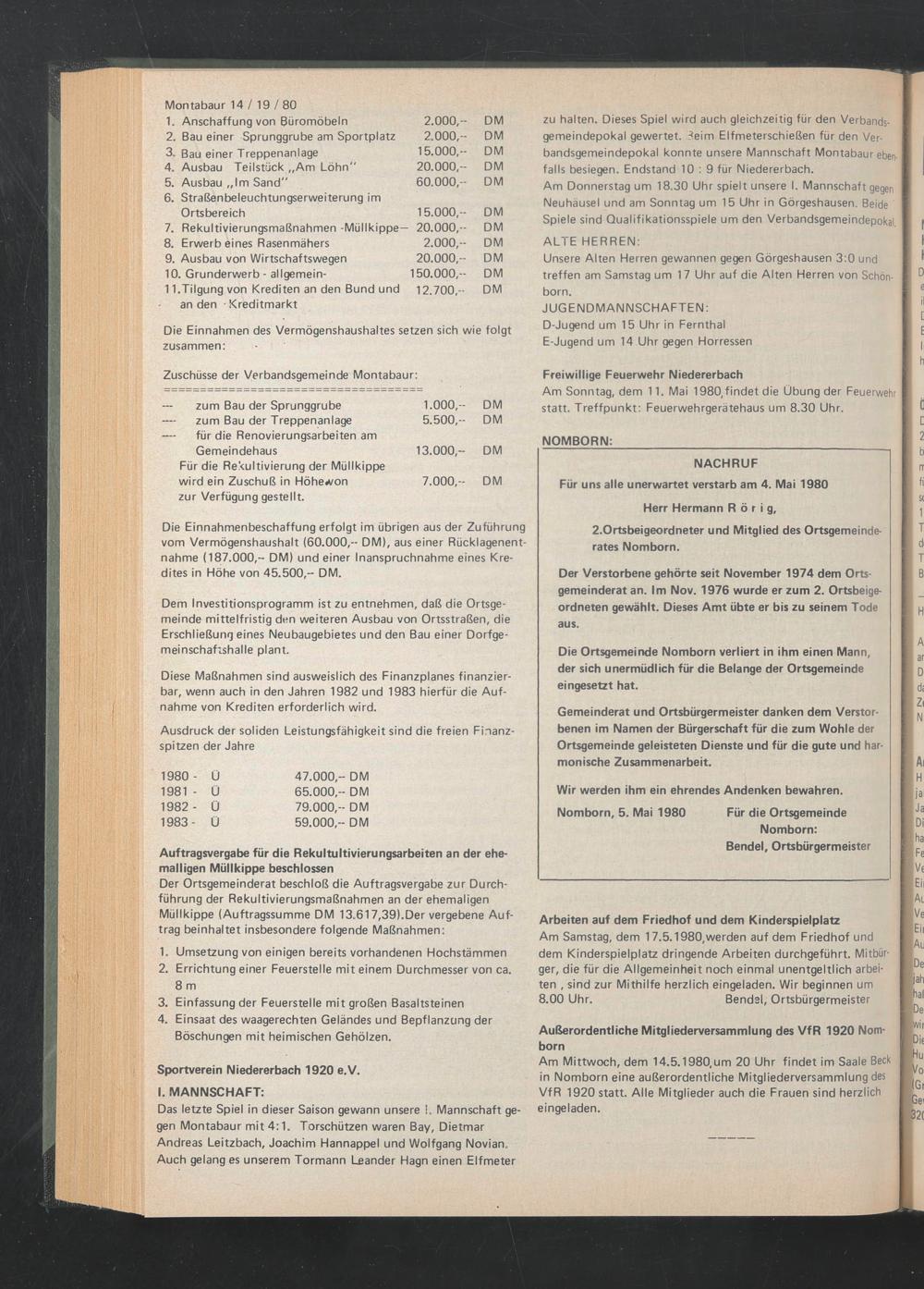 Nomborn, 5. Mai 1980 Für die Ortsgemeinde