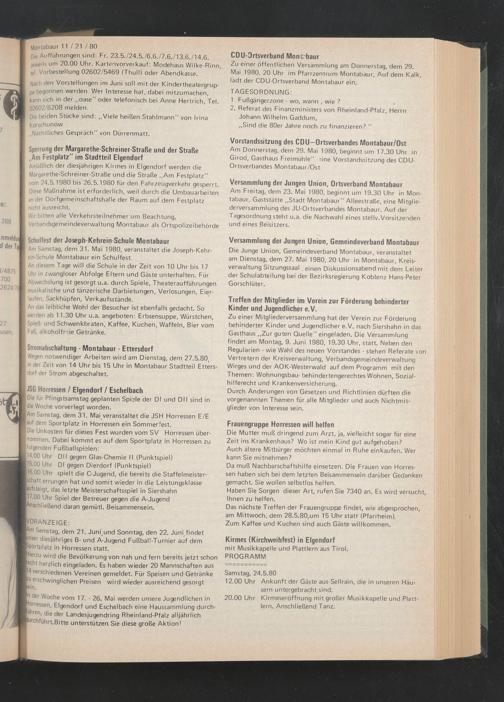 Mai 1980, 20 Uhr im Pfarrzentrum Montabaur, Auf dem Kalk, lädt der CDU-Ortsverband Montabaur ein.