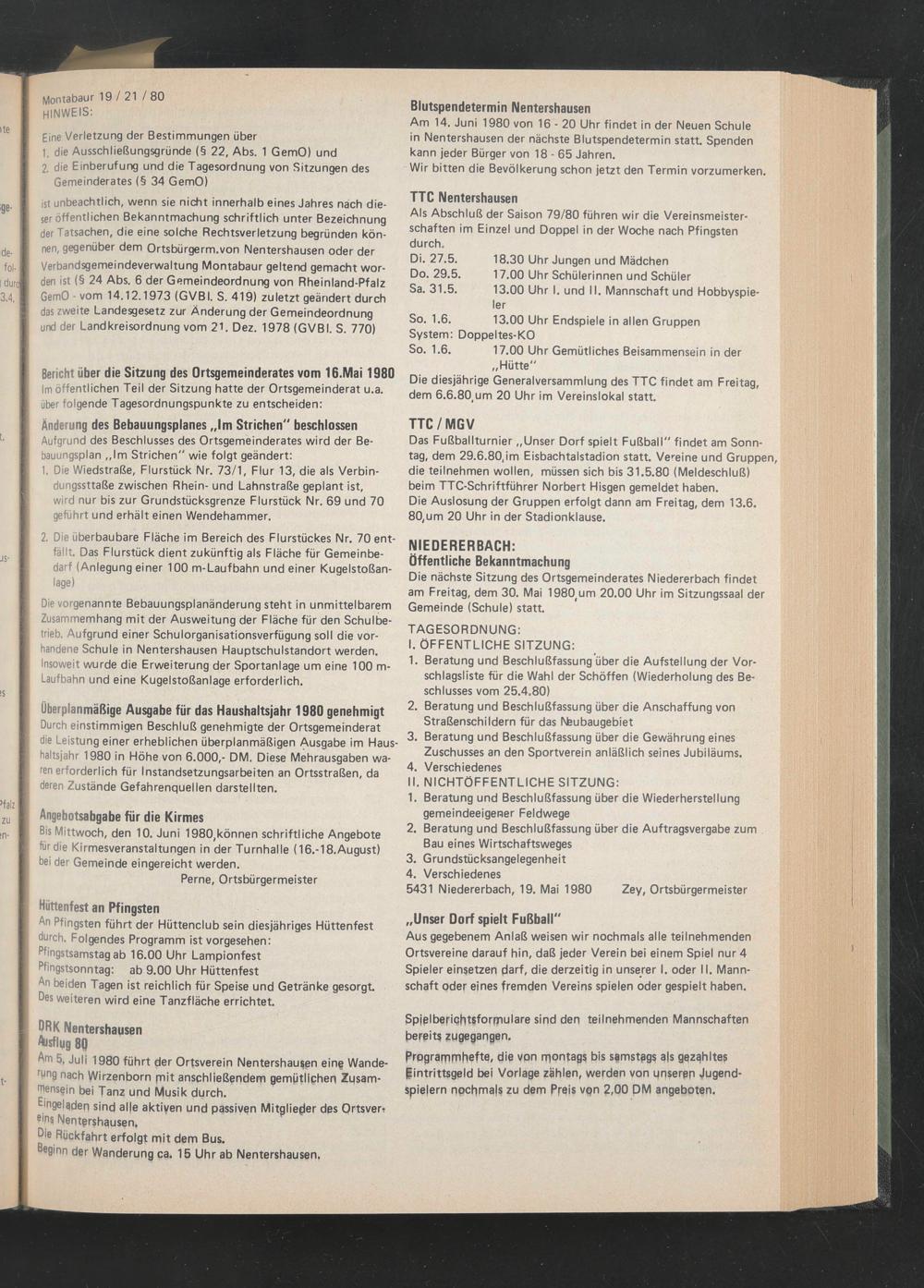 Bericht über die Sitzung des Ortsgemeinderates vom 16.Mai 1980