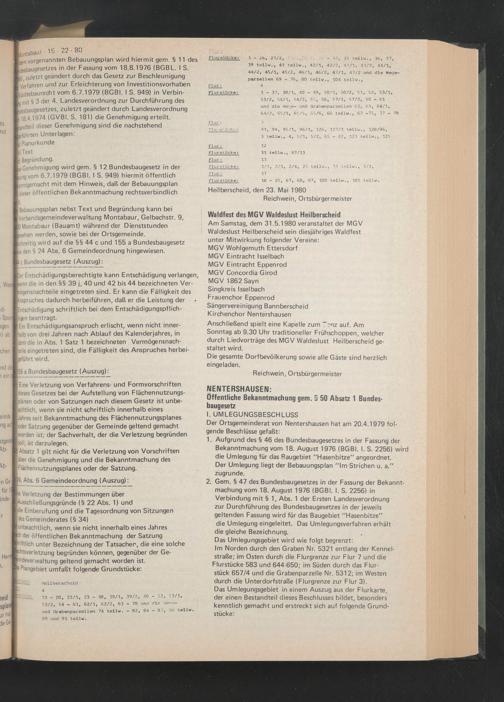 Am Samstag, dem 31.5.1980 veranstaltet der MGV Waldeslust Heilberscheid sein diesjähriges Waldfest unter Mitwirkung folgender Vereine: