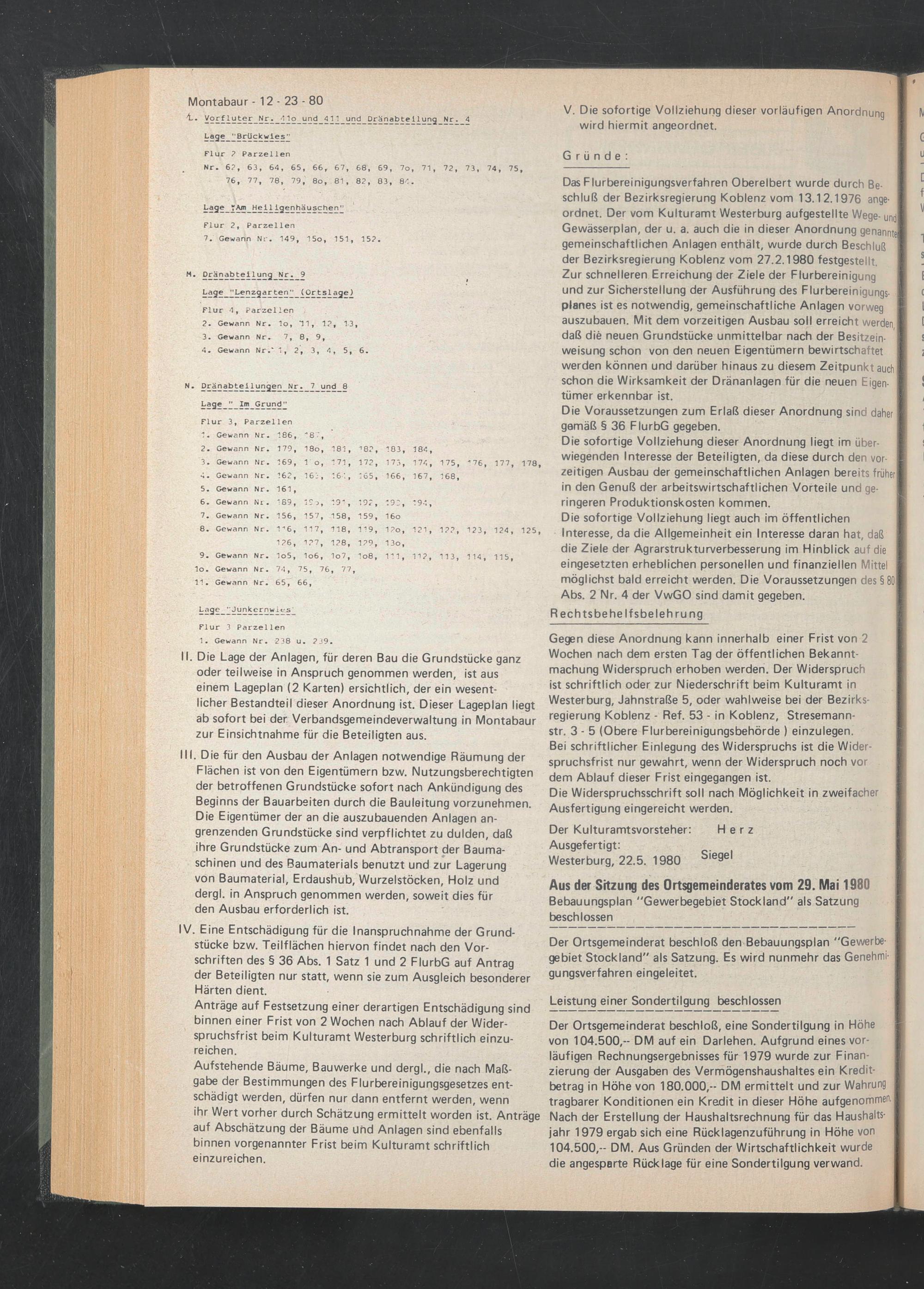 Aus der Sitzung des Ortsgemeinderates vom 29. Mai 1980