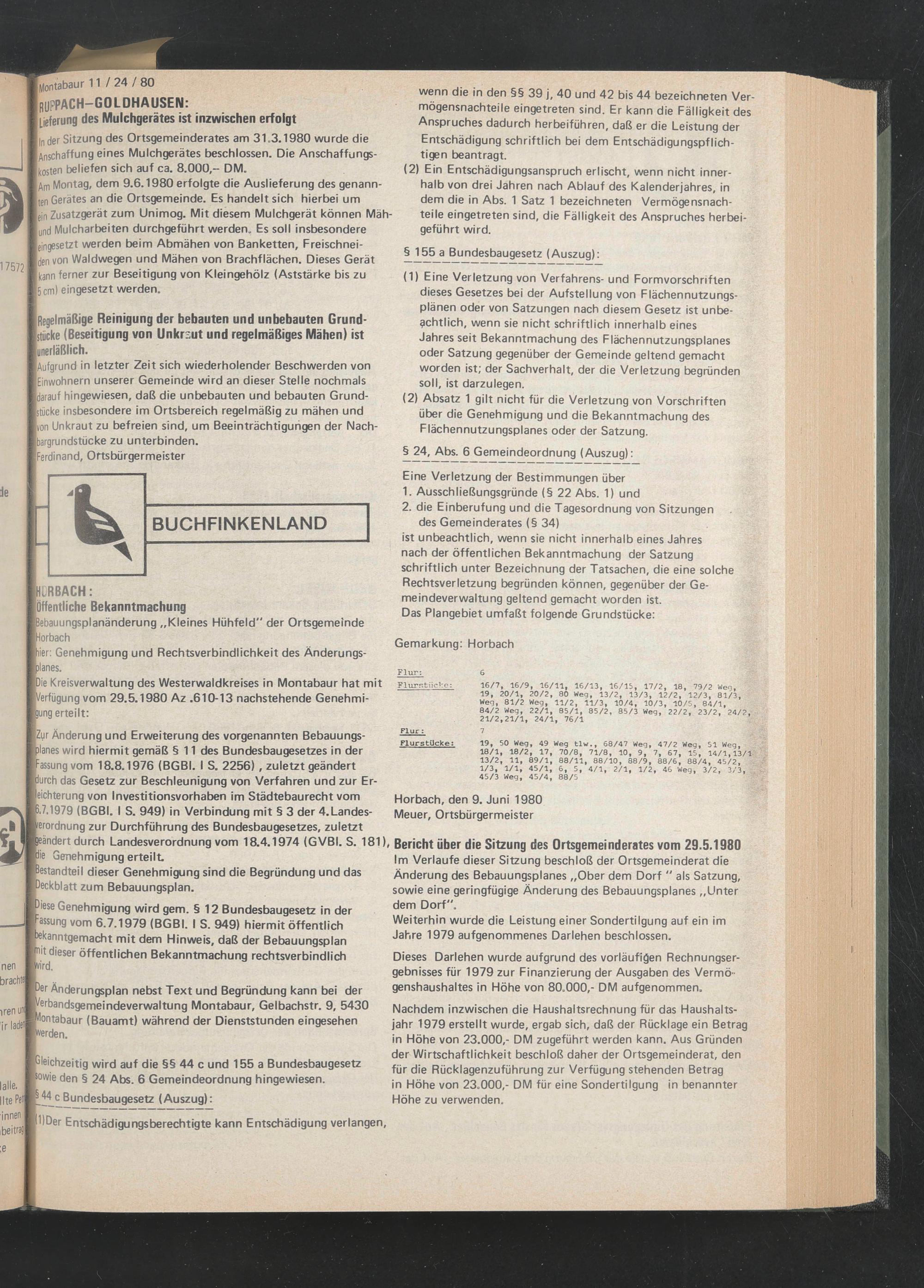 Horbach, den 9. Juni 1980 Meuer, Ortsbürgermeister