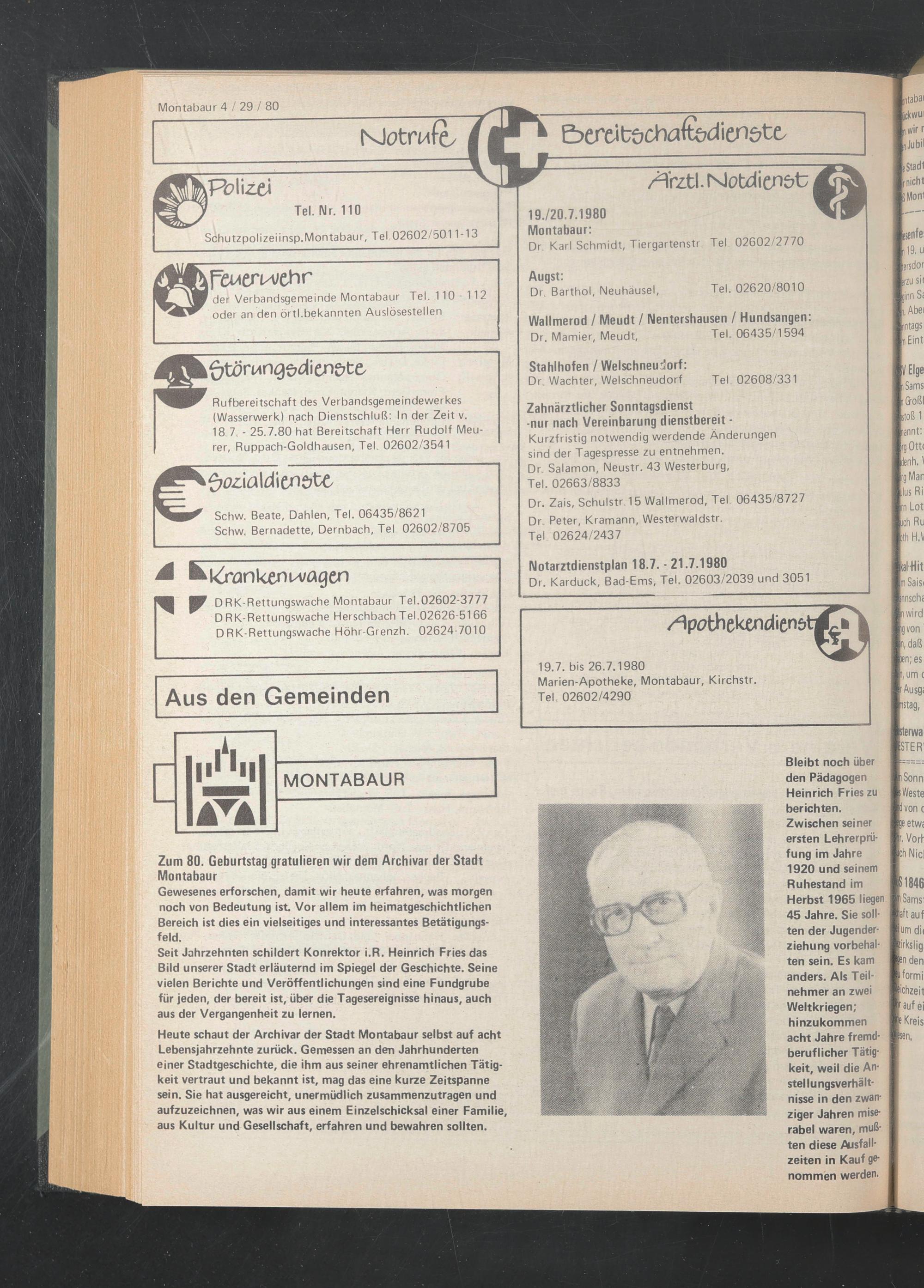 18 7. - 25.7.80 hat Bereitschaft Herr Rudolf Meu- rer, Ruppach-Goldhausen, Tel. 02602/3541