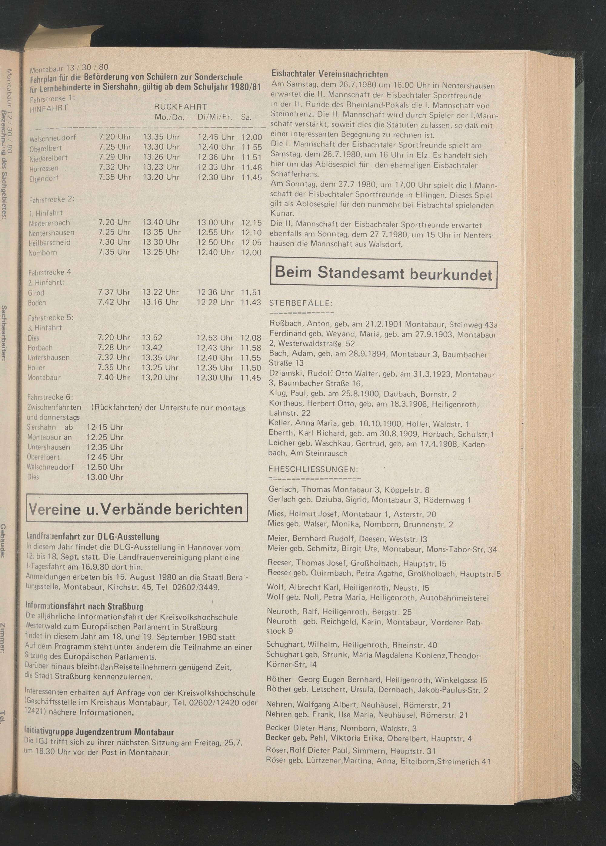Eisbachtaler Vereinsnachrichten