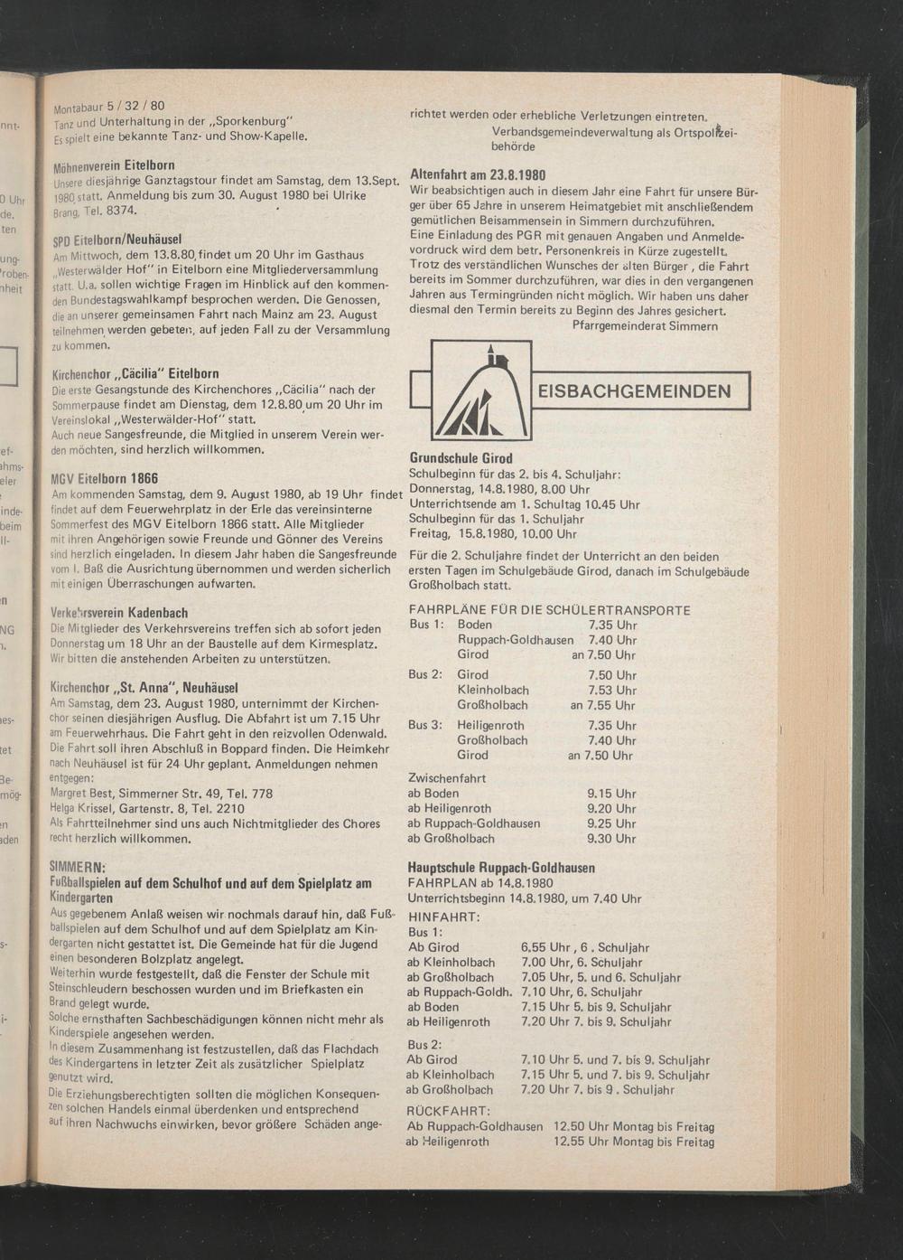 Am Mittwoch, dem 13.8.80,findet um 20 Uhr im Gasthaus Westerwälder Hof" in Eitelborn eine Mitgliederversammlung statt. U.a. sollen wichtige Fragen im Hinblick auf den kommenden Bundestagswahlkampf besprochen werden. Die Genossen, die an unserer gemeinsamen Fahrt nach Mainz am 23. August teilnehmen werden gebeten, auf jeden Fall zu der Versammlung zu kommen.