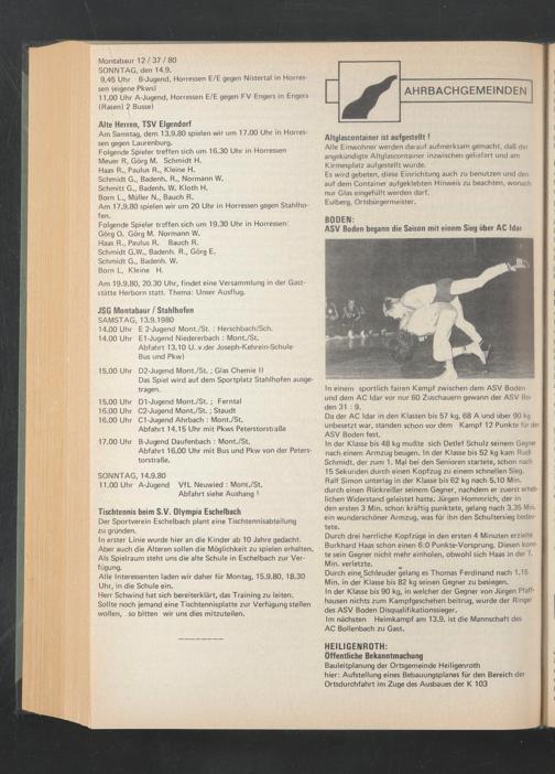Am Samstag, dem 13.9.80 spielen wir um 17.00 Uhr in Horressen gegen Laurenburg.