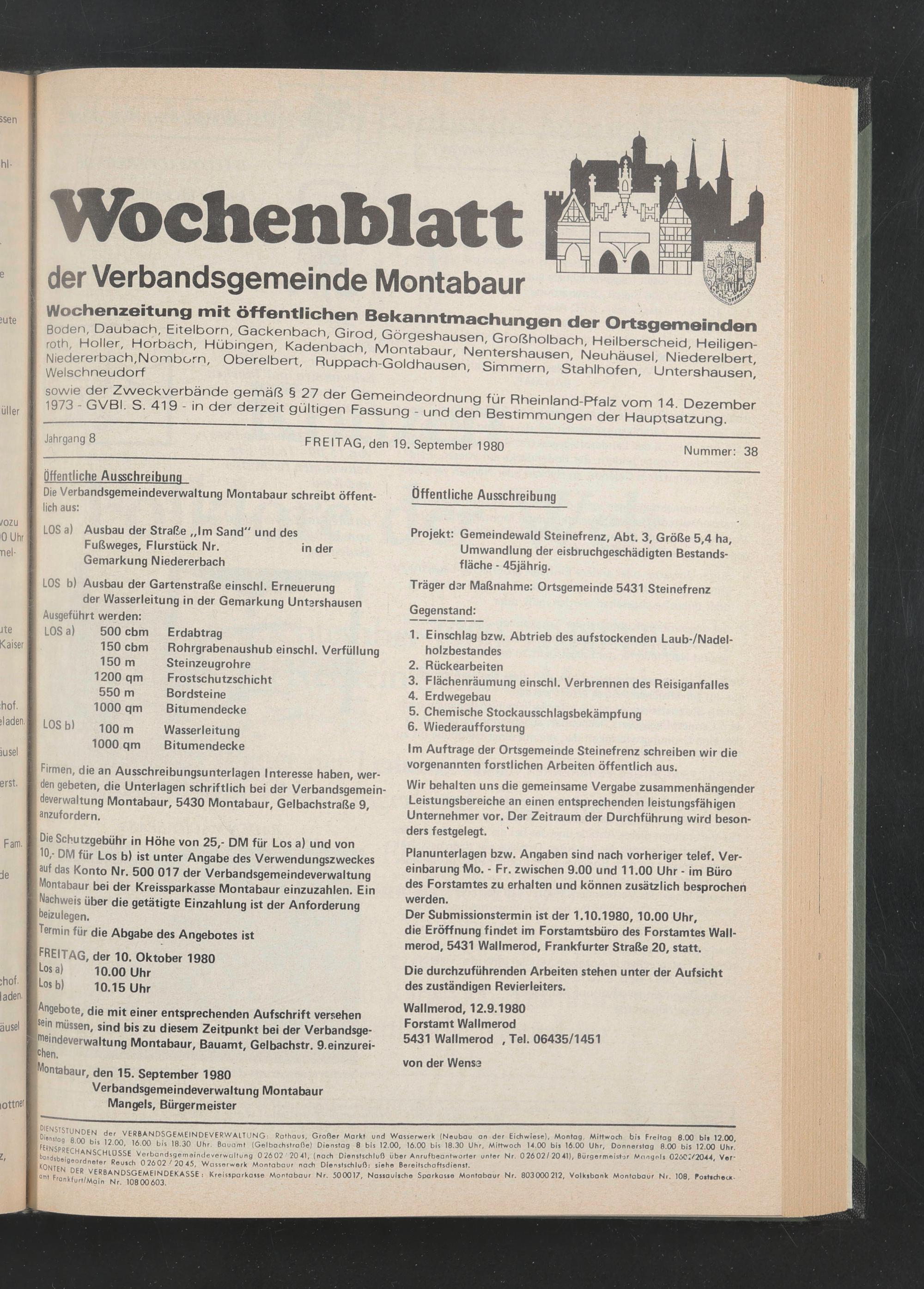 [Montabaur, den 15. September 1980 I Verbandsgemeindeverwaltung Montabaur