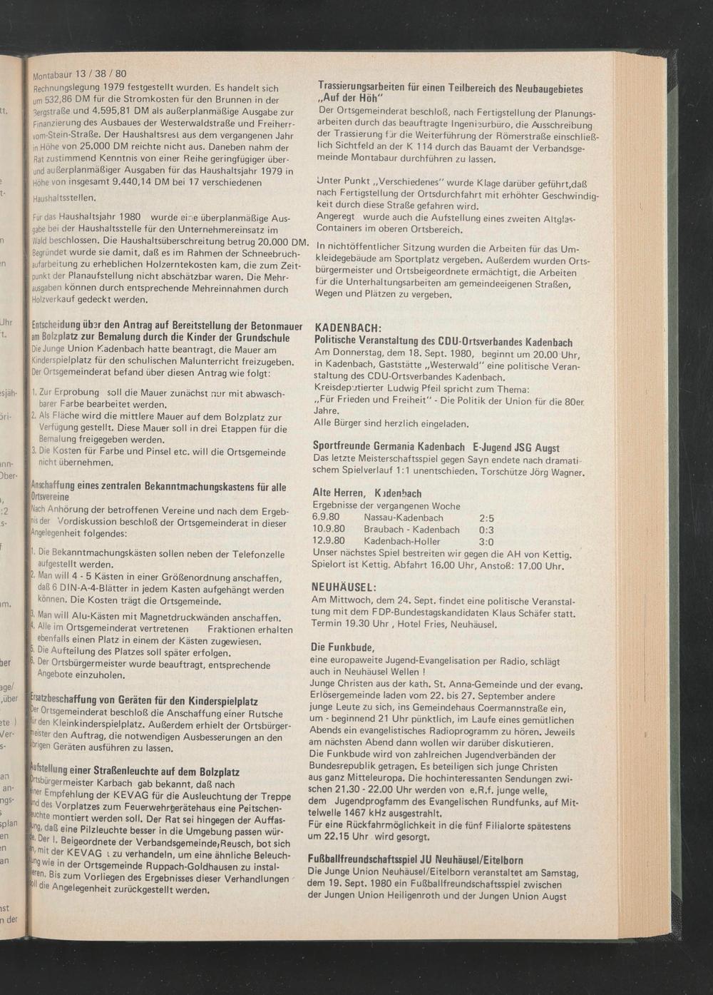 Am Donnerstag, dem 18. Sept. 1980, beginnt um 20.00 Uhr, in Kadenbach, Gaststätte „Westerwald" eine politische Veranstaltung des CDU-Ortsverbandes Kadenbach.