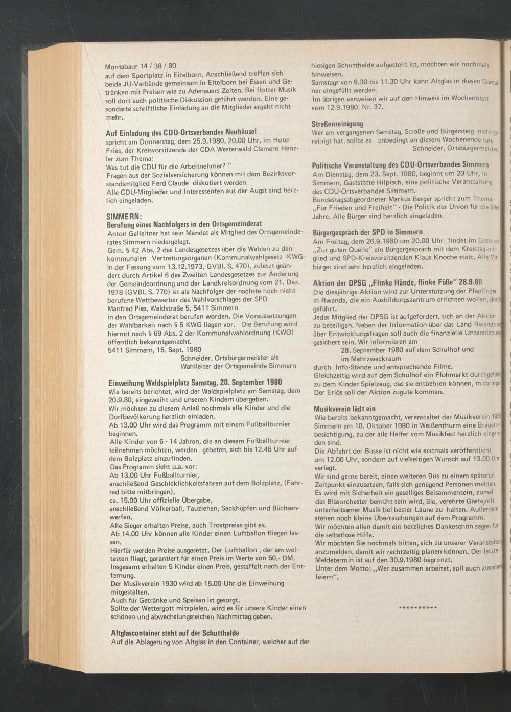 Am Dienstag, dem 23. Sept. 1980, beginnt um 20 Uhr, in Simmern, Gaststätte Hilpisch, eine politische Veranstaltung des CDU-Ortsverbandes Simmern.