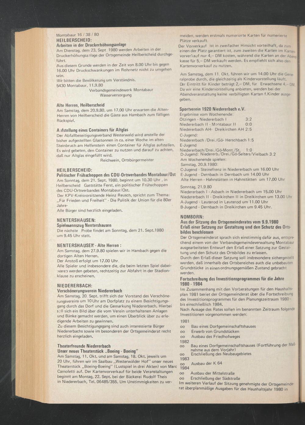 Am Sonntag, dem 21. Sept. 1980, beginnt um 10.30 Uhr, in Heilberscheid Gaststätte Ferst, ein politischer Frühschoppen des CDU-Ortsverbandes Montabaur/Ost.