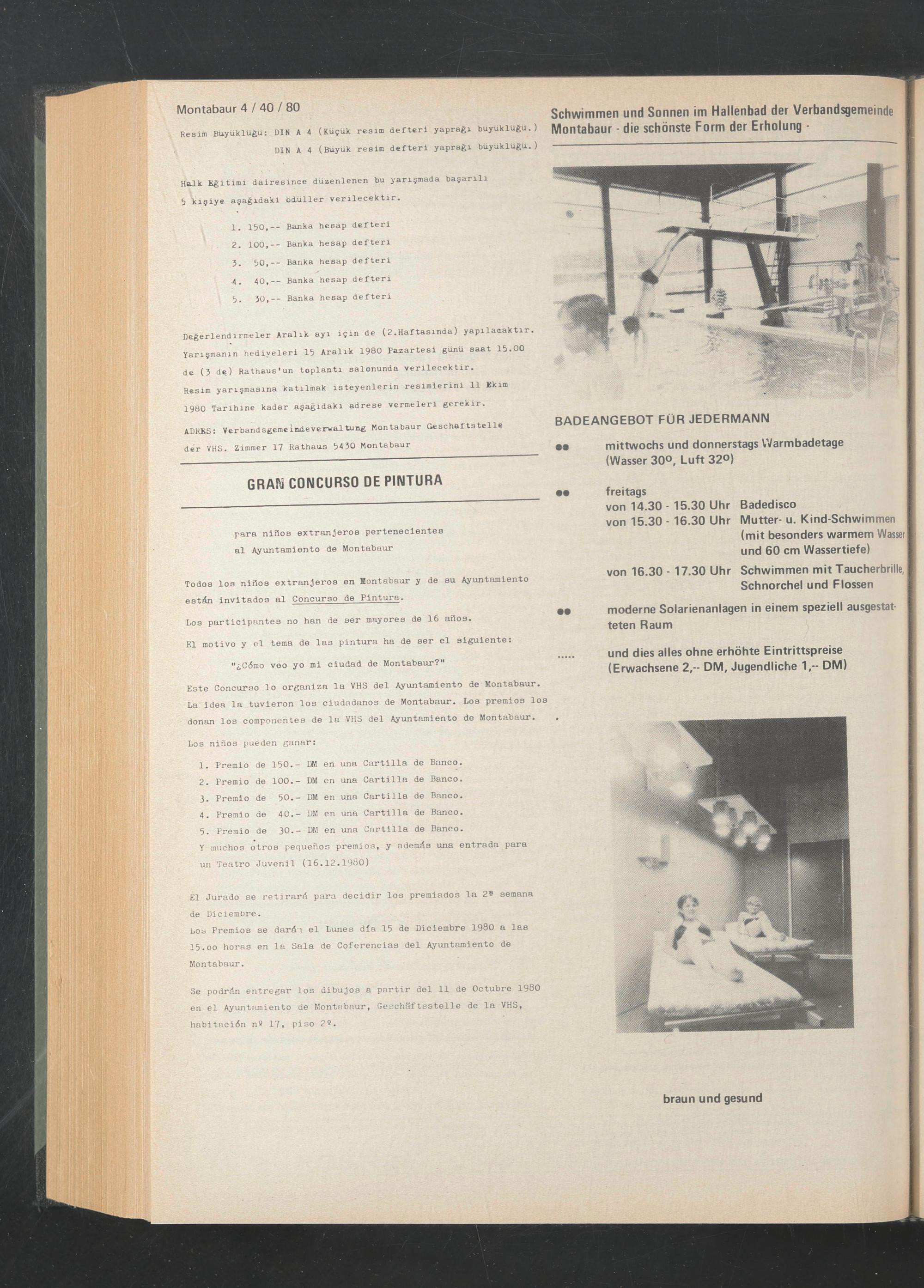 Se podrdn entregar los dibujos a partir del 11 de Octubre 1980 en el Ayuntamiento de Montabaur, Geschäftsstelle de la VHS, habitacidn n ö 17, piso 2$.