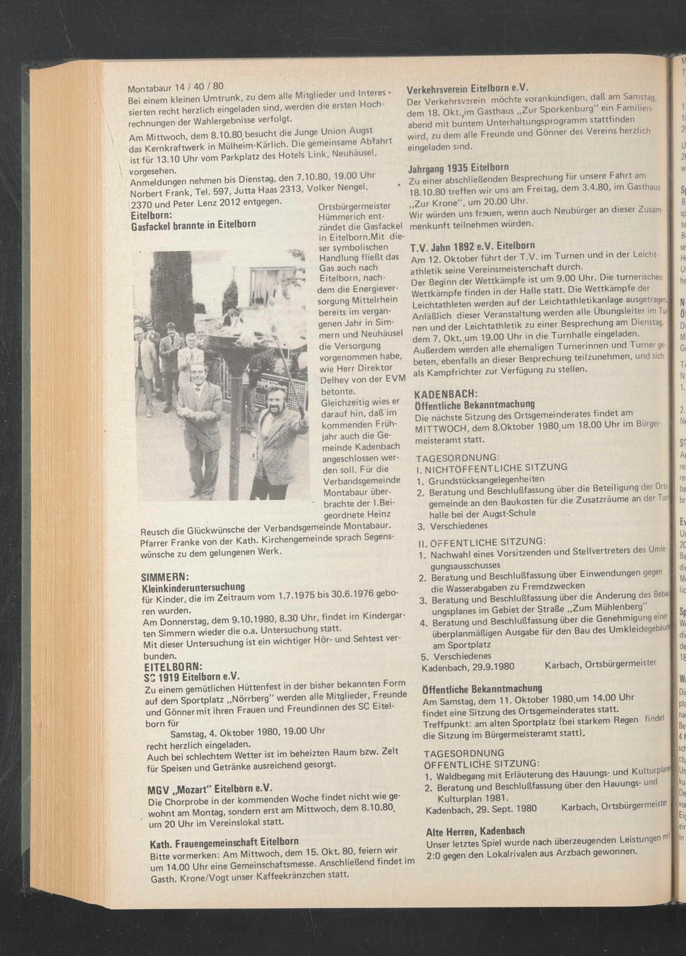 Öffentliche Bekanntmachung Am Samstag, dem 11. Oktober 1980,um 14.00 Uhr findet eine Sitzung des Ortsgemeinderates statt.