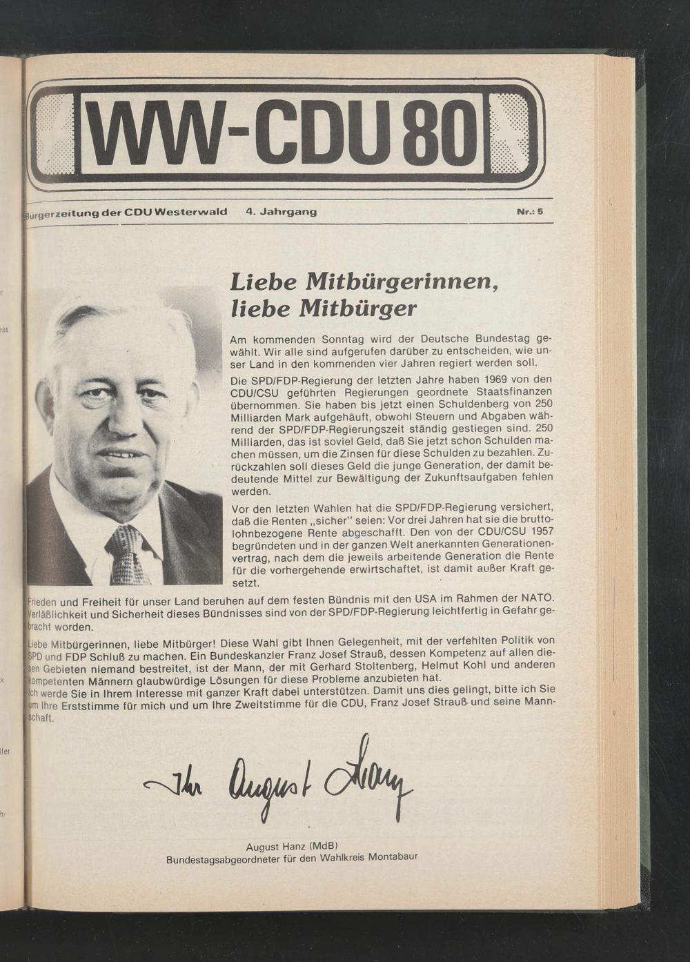 Jurgerzeitung der CDU Westerwald 4. Jahrgang Nr.: 5