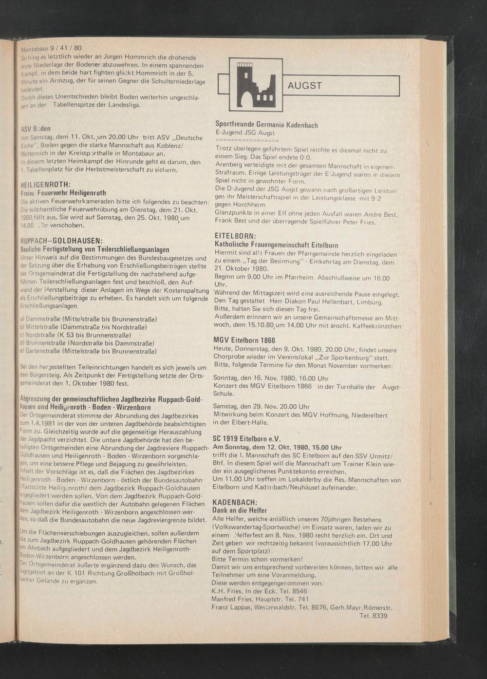 Bei den hergestellten Teileinrichtungen handelt es sich jeweils um Iden Bürgersteig. Als Zeitpunkt der Fertigstellung setzte der Ortsgemeinderat den 1. Oktober 1980 fest.