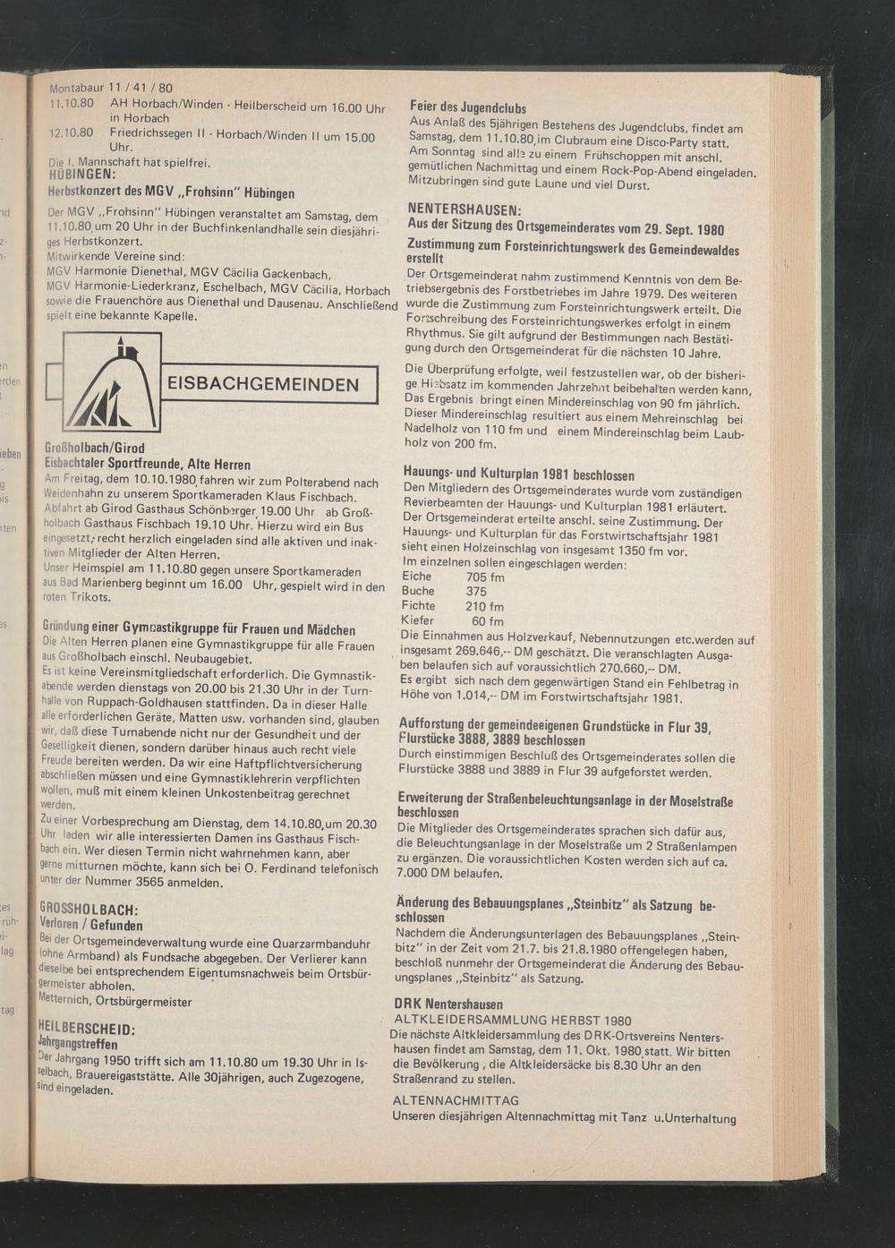 11.10.80 AH Horbach/Winden - Heilberscheid um 16.00 Uhr in Horbach