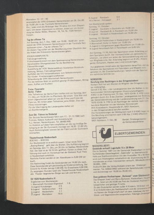 Am Sonntag, dem 7. Dez. 1980, von 10.00 - 18.00 Uhr veranstaltet der DRK-Ortsverein Nentershausen in der Turnhalle Nentershausen einen „Tag der offenen Tür".