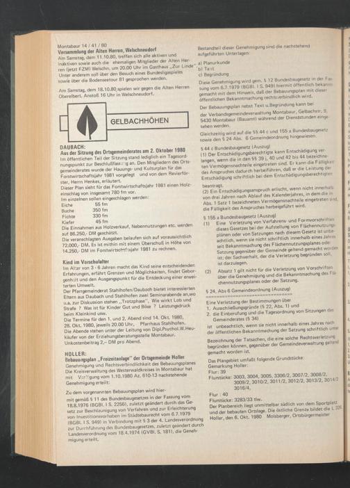 Aus der Sitzung des Ortsgemeinderates am 2. Oktober 1980