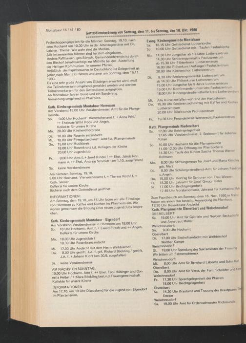 Gottesdienstordnung von Samstag, dem 11. bis Samstag, den 18. Okt. 1980