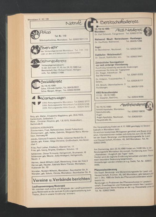 / In der Zeit vom 17.10. bis 24.10.1980 hat Bereitschaft Herr Richard Kexel, Heiligen- roth, Tel. 02602/17486
