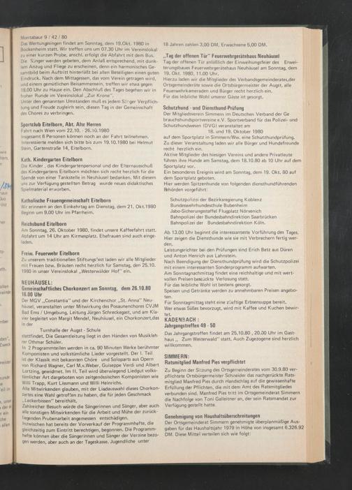 Fahrt nach Wien vom 22.10. - 26.10.1980 Insgesamt 6 Personen können noch an der Fahrt teilnehmen. Interessierte melden sich bitte bis zum 19.10.1980 bei Helmut Stein, Gartenstraße 14, Eitelborn.