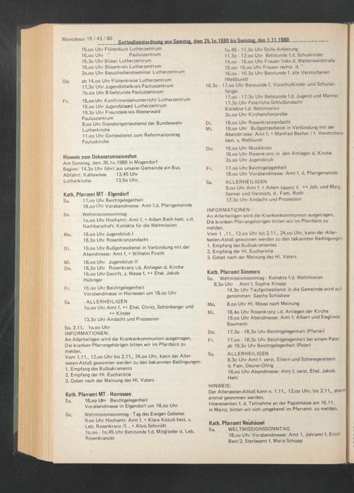 Am Sonntag, dem 26.1o. 1980 in Mogendorf Beginn: 14.3o Uhr fährt aus unserer Gemeinde ein Bus.