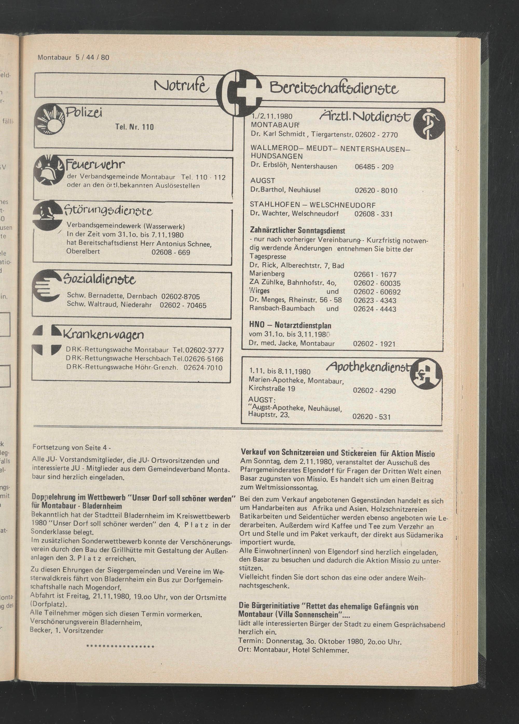 1.11. bis 8.11.1980 Marien-Apotheke, Montabaur,