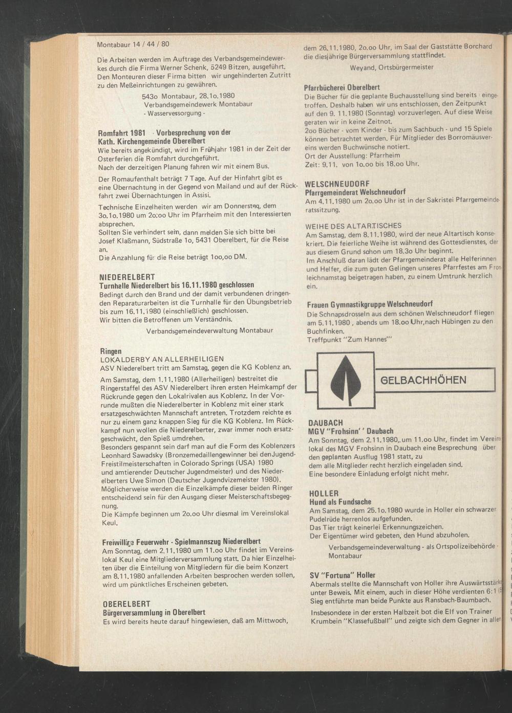Am Sonntag, dem 2.11.1980,.um 11.oo Uhr, findet im Vereins-| lokal des MGV Frohsinn in Daubach eine Besprechung über den geplanten Ausflug 1981 statt, zu dem alle Mitglieder recht herzlich eingeladen sind.