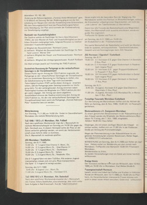 Der Vorstand und Beirat trftft sich am Mittwoch, dem 12.Nov. 1980 ( um 19.30 Uhr in Montabaur, Karl-Walter-Straße 6.