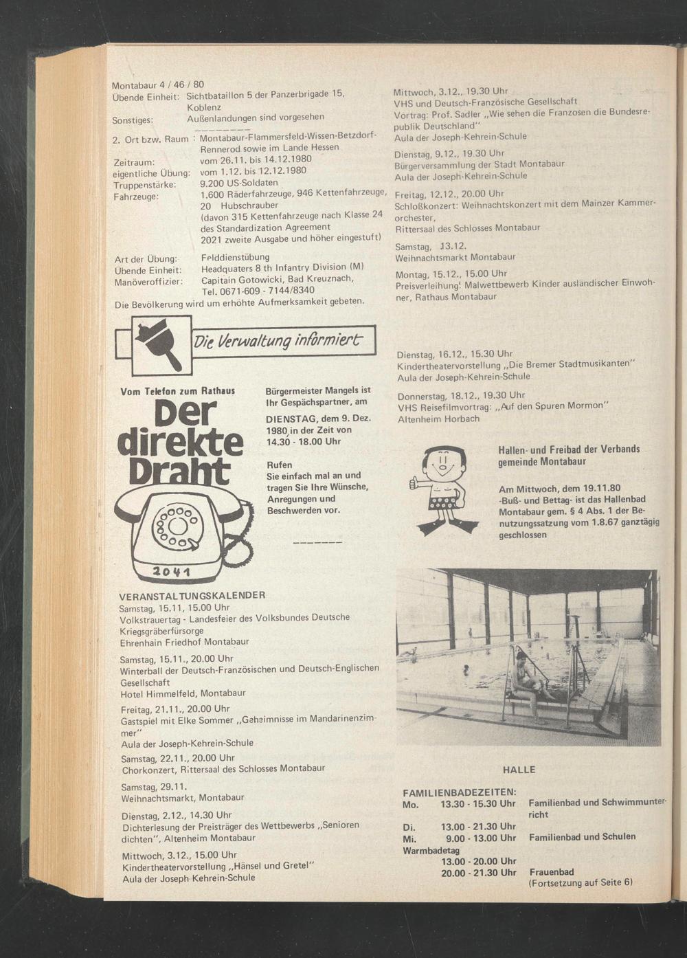 : Montabaur-Flammersfeld-Wissen-Betzdorf- Rennerod sowie im Lande Hessen vom 26.11. bis 14.12.1980 vom 1.12. bis 12.12.1980 9.200 US-Soldaten