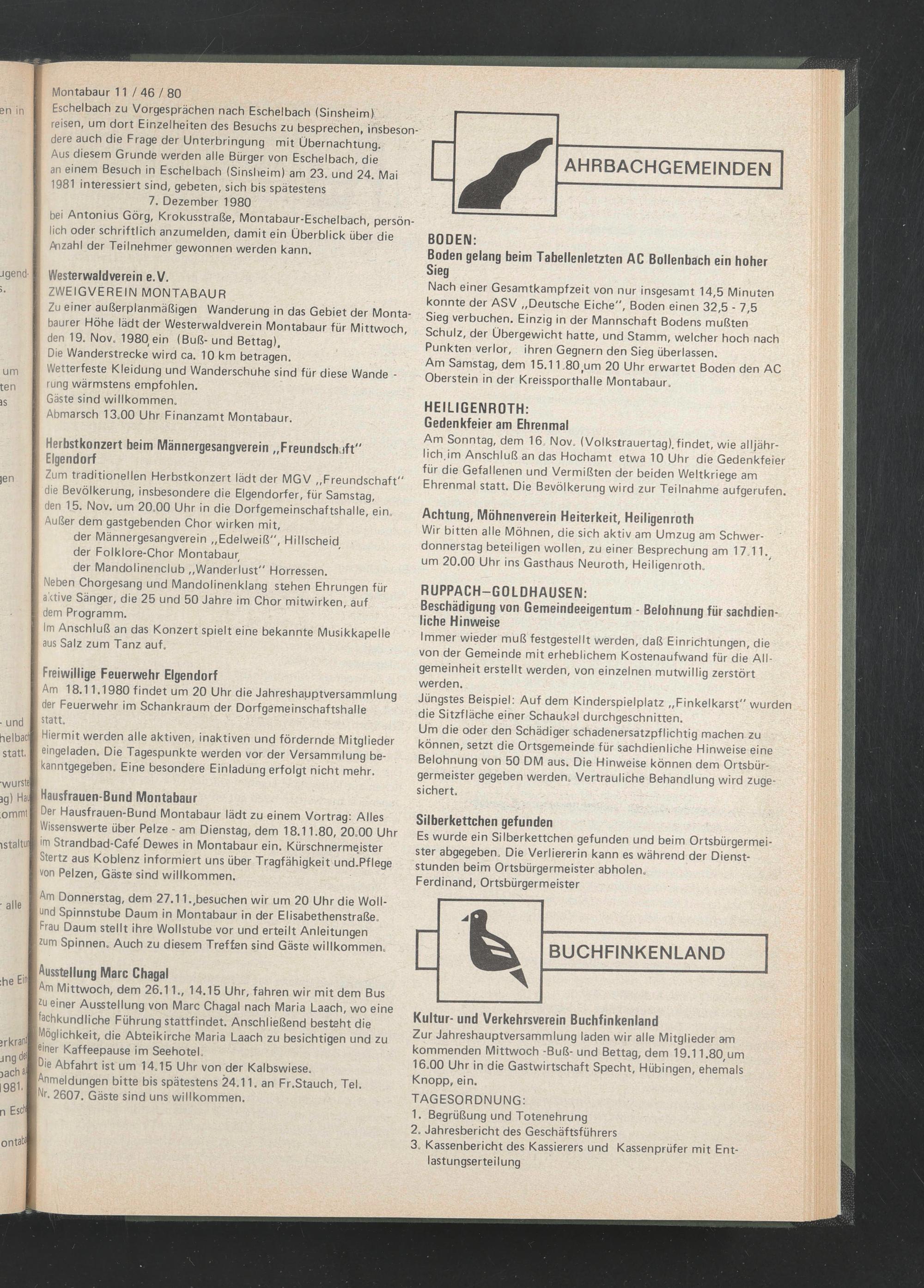 Zu einer außerplanmäßigen Wanderung in das Gebiet der Monta- baurer Höhe lädt der Westerwaldverein Montabaur für Mittwoch, den 19. Nov, 1980 ein (Buß- und Bettag),