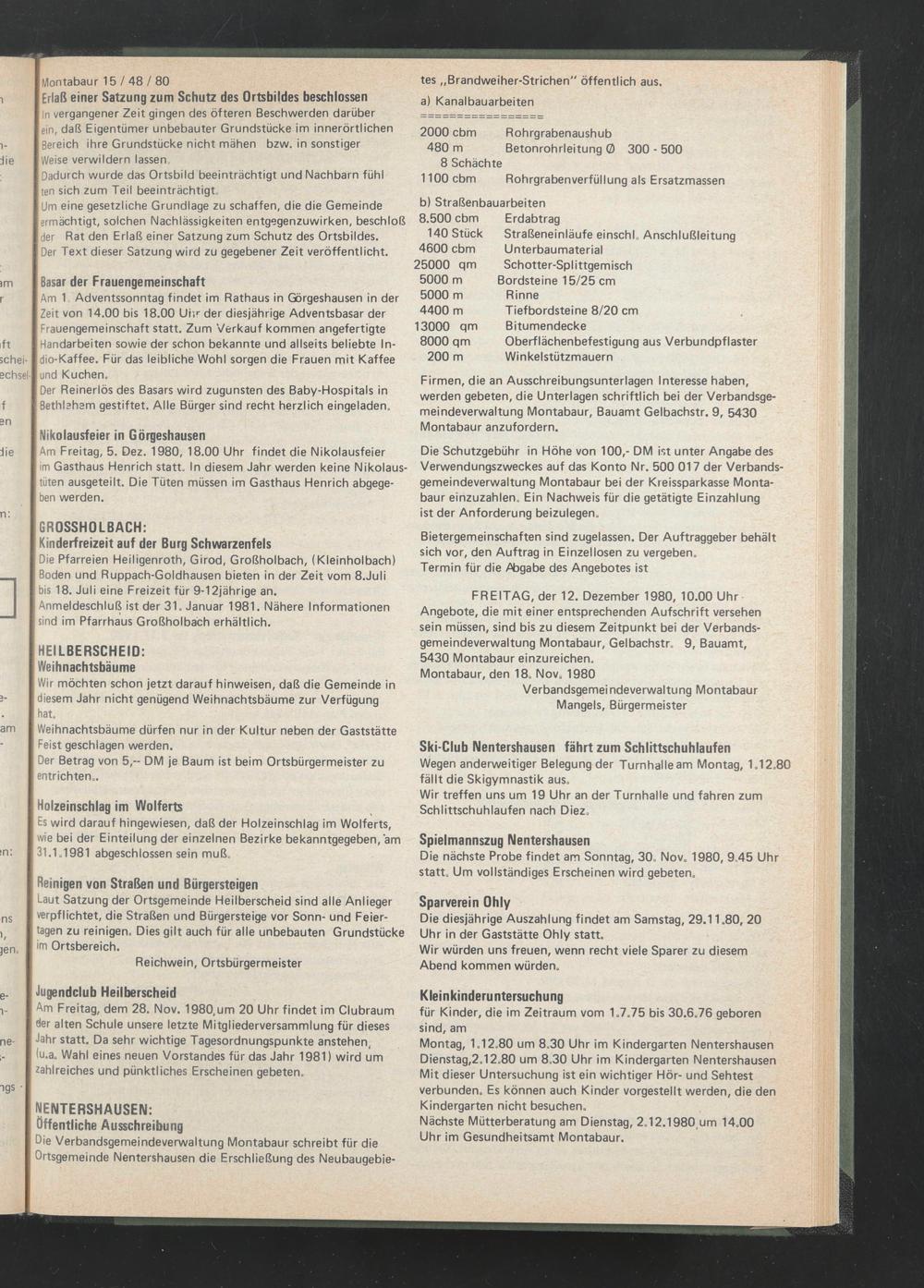 FREITAG, der 12. Dezember 1980, 10.00 Uhr Angebote, die mit einer entsprechenden Aufschrift versehen sein müssen, sind bis zu diesem Zeitpunkt bei der Verbandsgemeindeverwaltung Montabaur, Gelbachstr. 9, Bauamt, 5430 Montabaur einzureichen.