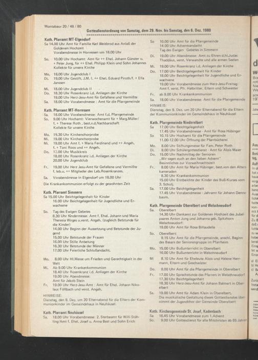 Gottesdienstordnung von Samstag, dem 29. Nov. bis Samstag, den 6. Dez. 1980